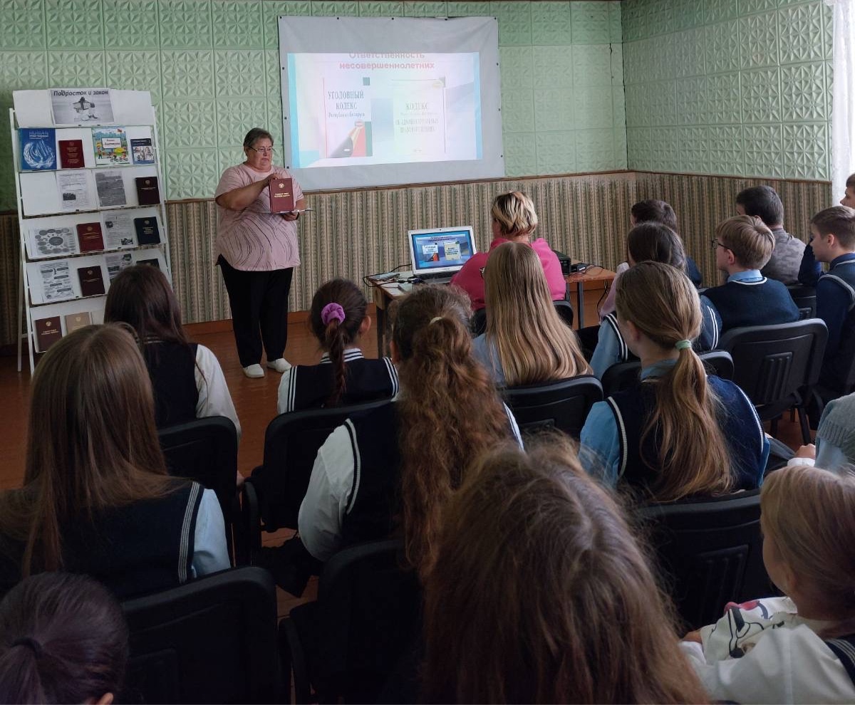 26 верасня ў філіяле “Сельская бібліятэка аг. Навасёлкі” прайшоў інфагадзіннік «Падлетак. Злачынства. Пакаранне». Удзельнікамі сустрэчы сталі старшакласнікі Навасёлкаўскай СШ. Разам з вядучымі яны абмяркоўвалі, чым адрозніваюцца праступак, правапарушэнне і злачынства, даведаліся, з якога ўзросту наступае крымінальная адказнасць і якія пакаранні прадугледжаны за розныя парушэнні. Школьнікі выконвалі практычныя заданні: аналізавалі жыццёвыя сітуацыі і вызначалі, якое пакаранне можа быць ужыта ў тым ці іншым выпадку. Да мерапрыемства была падрыхтавана кніжная выстава «Падлетак і закон», якая дапамагла глыбей раскрыць тэму. Такія сустрэчы спрыяюць таму, каб падлеткі лепш разумелі закон і ўсведамлялі адказнасць за свае ўчынкі.