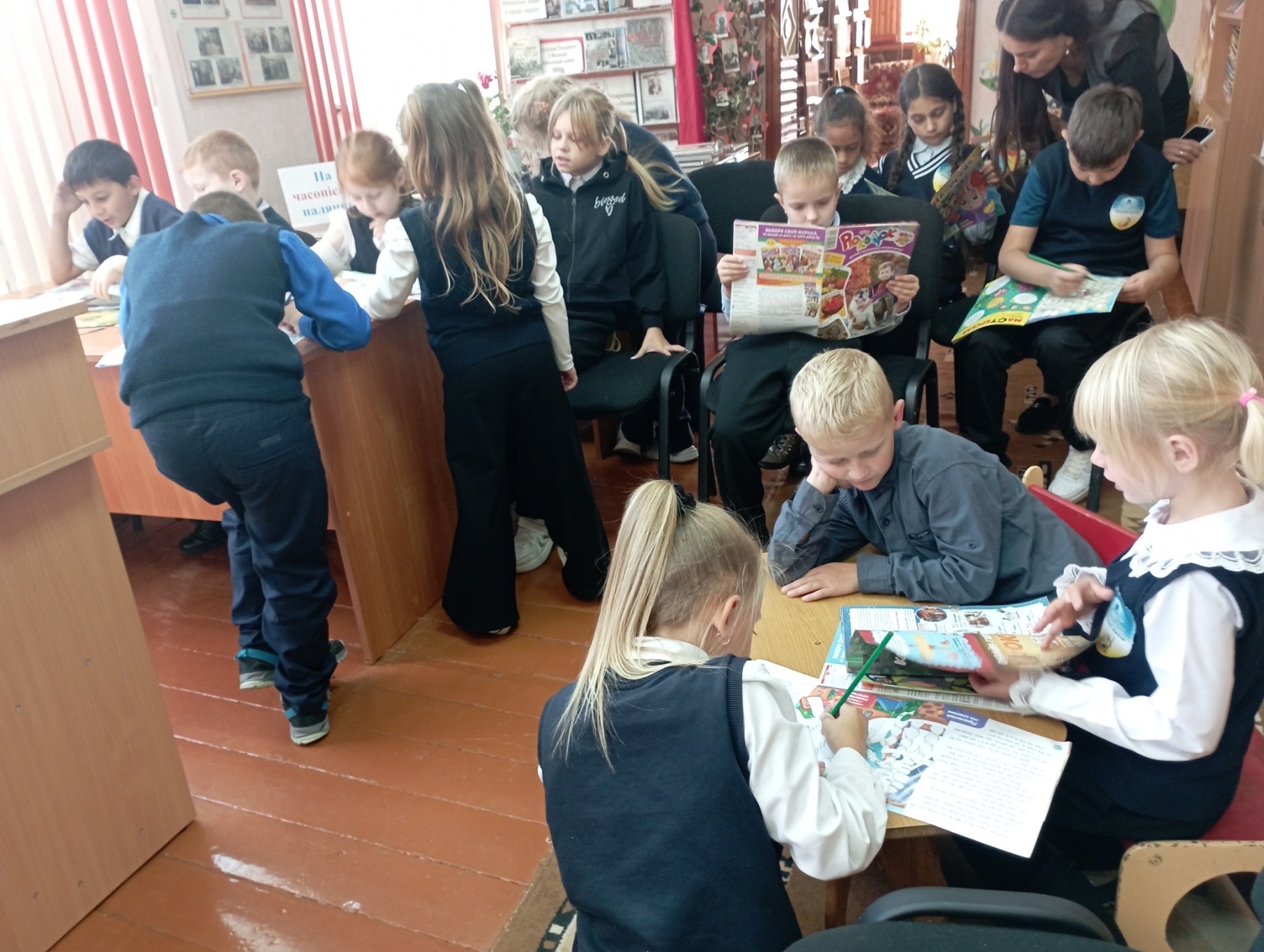 26 верасня ў філіяле “Сельская бібліятэка аг. Кальчуны” для вучняў групы прадоўжанага дня Кальчунскай сярэдняй школы прайшоў урок інфармацыйнай культуры “У краіне Журналіі”. Да мерапрыемства была падрыхтавана тэматычная падборка дзіцячых часопісаў “На часопіснай палянцы”. Дзеці з цікавасцю знаёміліся з матэрыяламі выданняў, даведваліся шмат новага і пазнавальнага. Яны разгадвалі крыжаванкі і рэбусы, удзельнічалі ў гульнях са старонак часопісаў, малявалі, задавалі пытанні. Урок прайшоў займальна і прынёс дзецям не толькі радасць зносін і творчасці, але і карысць — вольны час быў праведзены цікава і з карысцю.