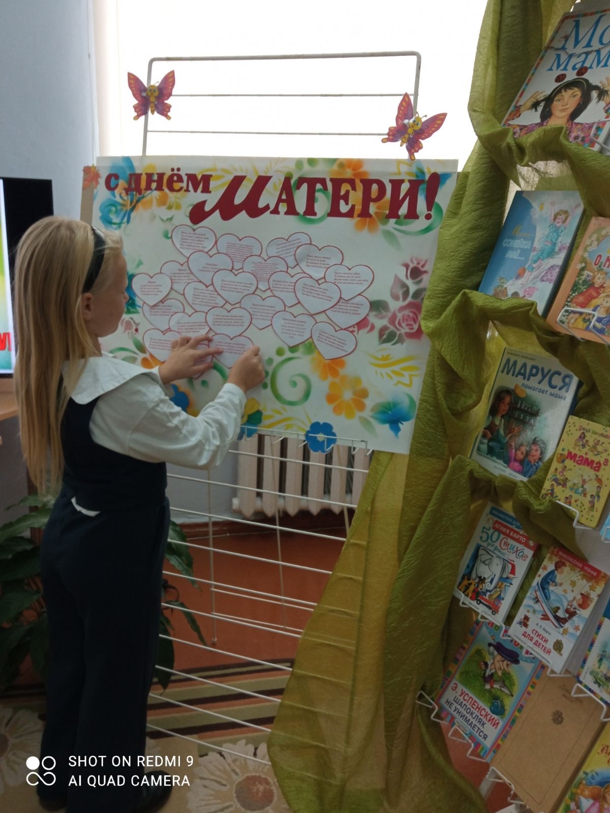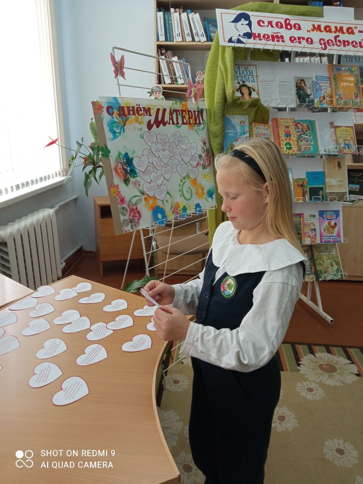 14 кастрычніка ў дзіцяча-юнацкім сектары бібліятэкі прайшоў пазнавальны калаж “Ці ведаеце вы?”, прысвечаны цудоўнаму святу — Дню маці. Дзеці з захапленнем выбіралі яркія папяровыя сэрцы з віншаваннямі, цікавымі фактамі пра свята і цёплымі словамі для сваіх мам. З гэтых маленькіх сэрцаў разам стварылі вялікае — сімвал любові, удзячнасці і мацярынства. На інфармацыйных картках дзеці даведаліся, калі і як з’явілася гэтае свята, як яго адзначаюць у розных краінах і што можна падарыць маме ў знак любові і пашаны. Да свята ў бібліятэцы была аформлена яскравая кніжная выстава “Слова мама — няма яго дабрэй”, дзе кожны мог знайсці душэўныя кнігі пра маму, сям’ю і каханне. Няхай кожны дзень будзе напоўнены цяплом, дабрынёй і пяшчотай — як мацярынскае сэрца!