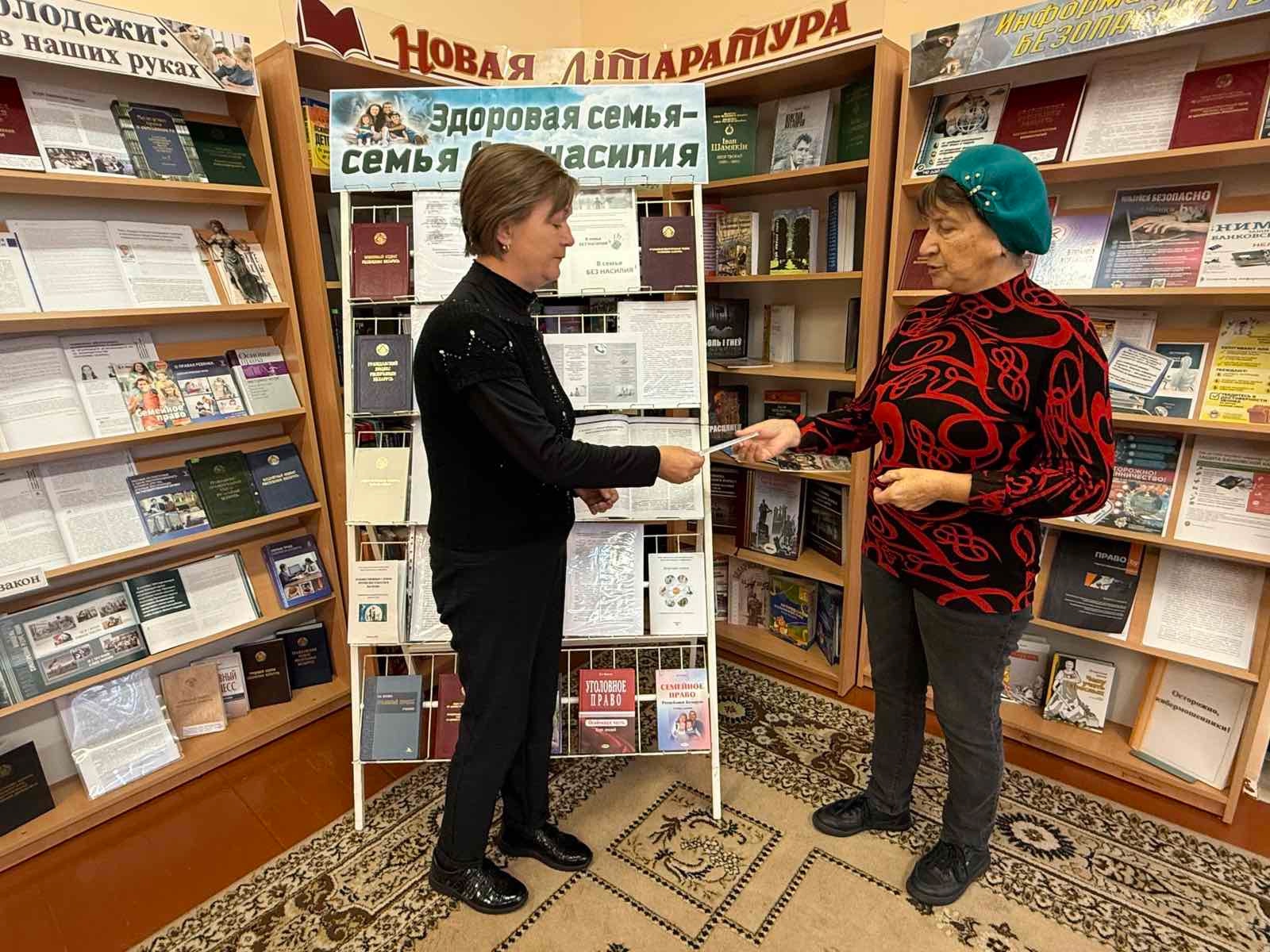 17 кастрычніка ў ГУК “Ашмянская раённая бібліятэка” прайшла акцыя “Здаровая сям’я — сям’я без гвалту”, якая была накіравана на прафілактыку жорсткага абыходжання з непаўналетнімі і фарміраванне ў бацькоў адказнага стаўлення да гэтай важнай праблемы. У рамках мерапрыемства была аформлена кніжная выстава “Здаровая сям’я — сям’я без гвалту”. На ёй прадстаўлены прававыя выданні, а таксама літаратура, прысвечаная пытанням прадухілення гвалту і аказання экстранай дапамогі яго ахвярам. Наведвальнікі бібліятэкі атрымалі інфармацыйныя буклеты і памяткі з тэлефонамі псіхалагічнай дапамогі, якія могуць стаць важнай падтрымкай у складанай жыццёвай сітуацыі. Хай кожная сям’я будзе месцам цяпла, клопату і ўзаемаразумення.
