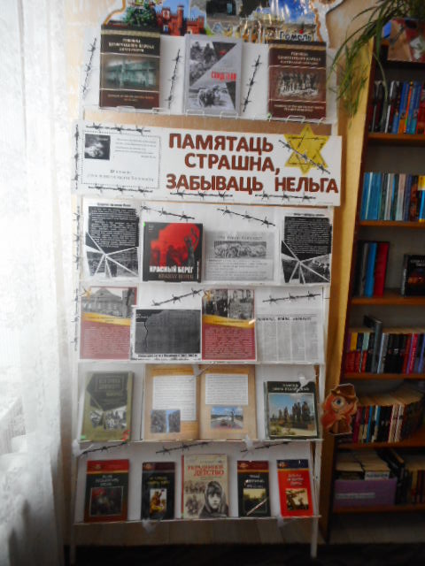 25 студзеня у філіяле “Сельская бібліятэка аг.Крэйванцы” падрыхтавана выстава-смутак “Памятаць страшна, забываць нельга”, прысвечаная Дню памяці ахвяр Халакосту. Гэта не проста выстава, а ціхае сведчанне трагедыі, што назаўжды змяніла ход гісторыі. Выставу складаюць кнігі, якія распавядаюць пра жахлівыя падзеі Халакосту – масавае знішчэнне мірнага насельніцтва ў лагерах смерці падчас Вялікай Айчыннай вайны. Кожная старонка – гэта боль, кожны радок – гэта памяць. Выданні праілюстраваны гістарычнымі і сучаснымі фатаграфіямі, фотакопіямі архіўных дакументаў. Выстава-смутак “Памятаць страшна, забываць нельга” – гэта магчымасць дакрануцца да трагічных старонак гісторыі, ушанаваць памяць бязвінна загінуўшых, праз прызму мінулага ўбачыць каштоўнасць міру і згоды.