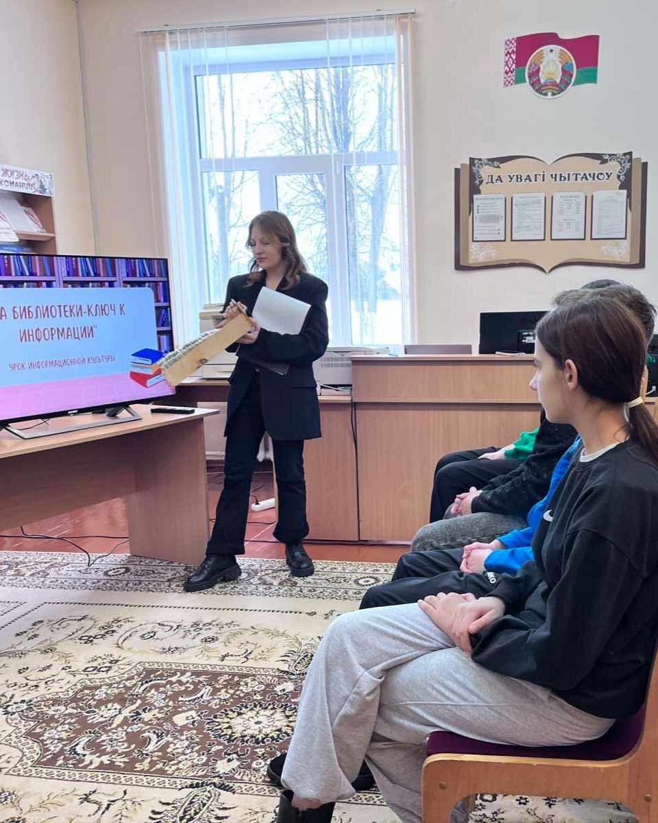 27 студзеня ў ДУК “Ашмянская раённая бібліятэка” ў рамках прафарыентацыі і развіцця інфармацыйнай пісьменнасці для навучэнцаў 9 “В” класа гімназіі №1 г.Ашмяны прайшоў займальна-пазнавальны ўрок інфармацыйнай культуры “Бібліятэка – ключ да інфармацыі”. Дзеці пазнаёміліся з прынцыпамі працы электроннага каталога, дзе навучыліся хутка і эфектыўна знаходзіць патрэбную літаратуру; метадамі падбору крыніц для навучальных праектаў і даследчых работ.