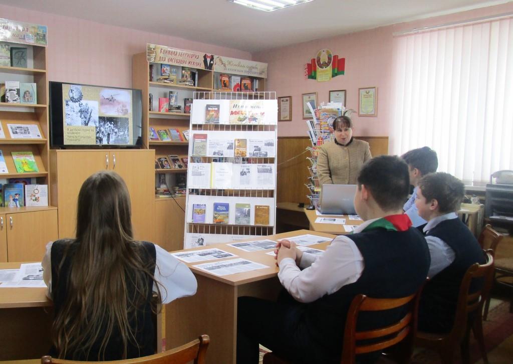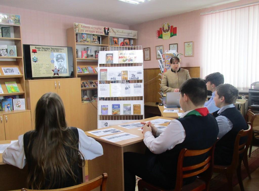 13 лютага ў філіяле “Сельская бібліятэка аг.Мураваная Ашмянка” адбыўся ўрок мужнасці “Памяць Афганістана”, прысвечаны Дню памяці воінаў-інтэрнацыяналістаў. Разам з бібліятэкарам прысутныя зазірнулі ў гісторыю Афганскай вайны, якая працягвалася больш за 9 гадоў і забрала сотні тысяч жыццяў. Была ўшанавана памяць трох юнакоў з Ашмяншчыны – Сяргея Залатарова, Сяргея Клінцэвіча і Эдуарда Кеды – хвілінай маўчання. Уражлівыя відэаролікі з песнямі і дакументальнымі кадрамі ваенных падзей дазволілі адчуць усю трагедыю тых дзён. На стэндзе «Из пламени Афганистана» была прадстаўлена тэматычная літаратура, што дапоўніла глыбіню ўспрыняцця падзей.