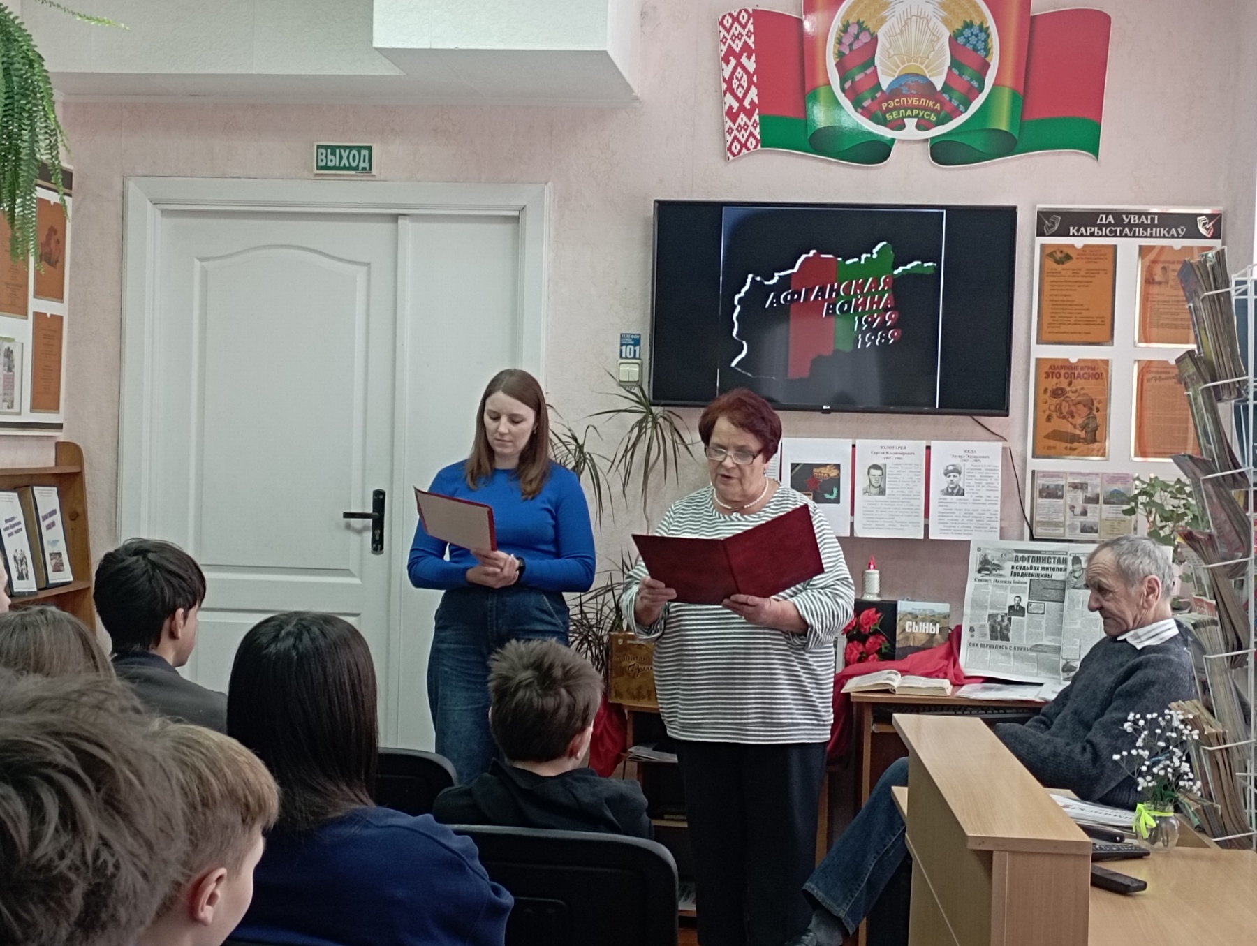 15 лютага бібліятэкар філіяла “Сельская бібліятэка аг.Кальчуны”, сумесна з работнікамі філіяла “Сельскі клуб аг.Кальчуны”, правялі вечар успамінаў “Афганістан – боль праз гады”, прысвечаны Дню памяці воінаў-інтэрнацыяналістаў. Асаблівым момантам сустрэчы стала знаёмства з земляком, Васілеўскім Віктарам, які прайшоў суровую афганскую вайну ад пачатку да канца. Яго ўспаміны, адказы на пытанні і вершы стварылі між прысутнымі цёплую, шчырую атмасферу. Бібліятэкар прадставіла тэматычную падборку літаратуры “Рубцом на сэрца лёг Афганістан”, а прагляд відэаролікаў дазволіў яшчэ раз асэнсаваць перажытае тымі, хто ваяваў.