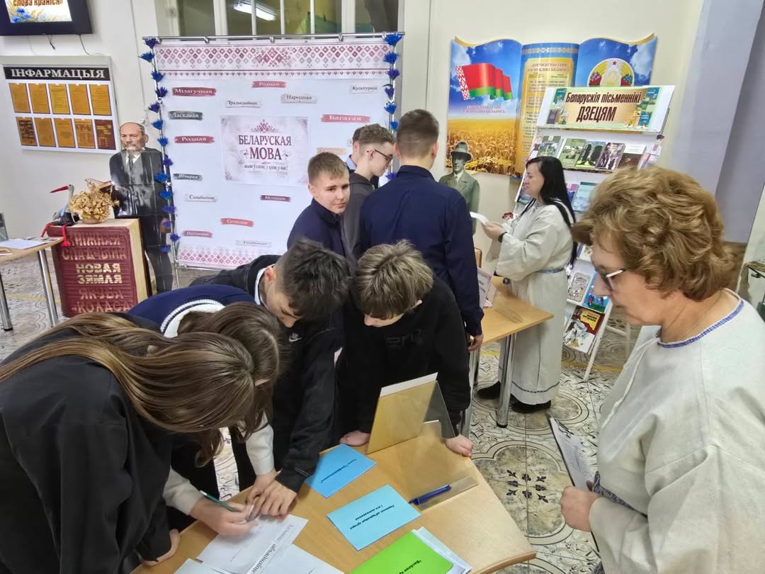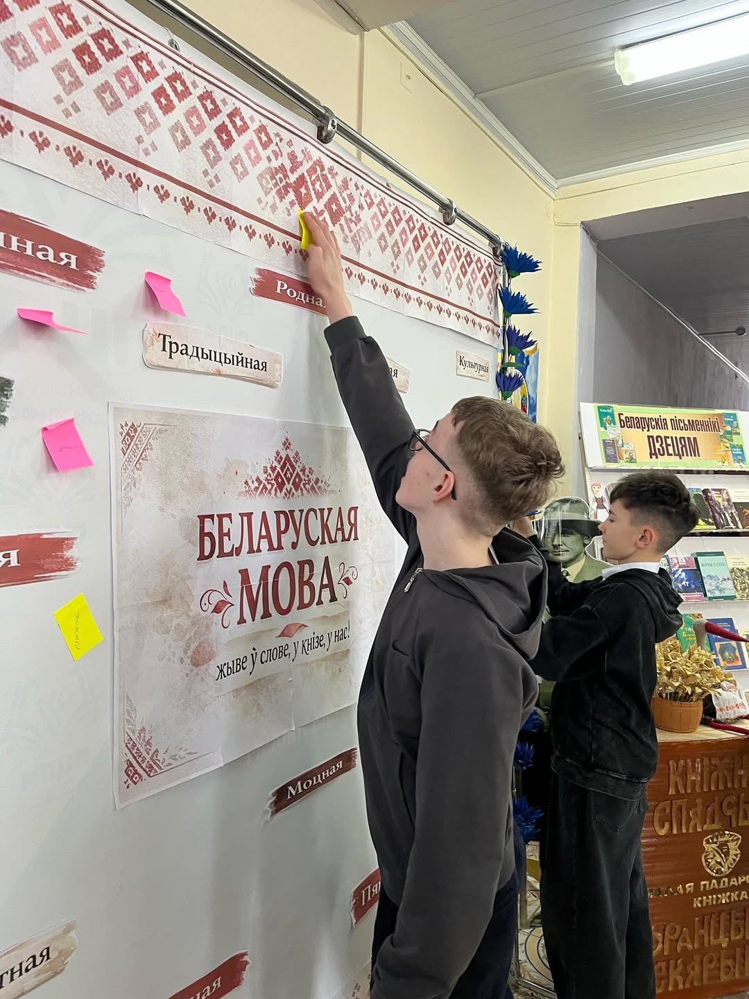 Вучні 9 “В” класа СШ №3 г.Ашмяны акунуліся ў свет беларускай мовы і літаратуры. Бібліятэкары прапанавалі школьнікам паўдзельнічаць у вандроўцы па бібліяграфічных лакацыях: “Бібліяграфічны навігатар”, Скарбніца роднага слова”, “Мова ў лічбе”, “Гульнявая майстэрня слова”. У канцы мерапрыемства дзецям прапанавалі напісаць на дошцы свае любімыя словы на беларускай мове.