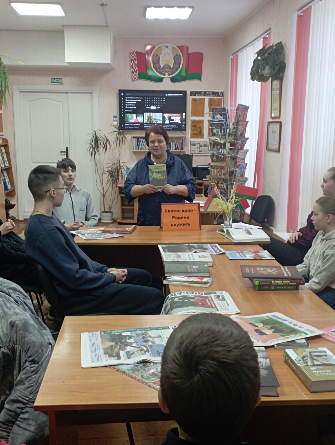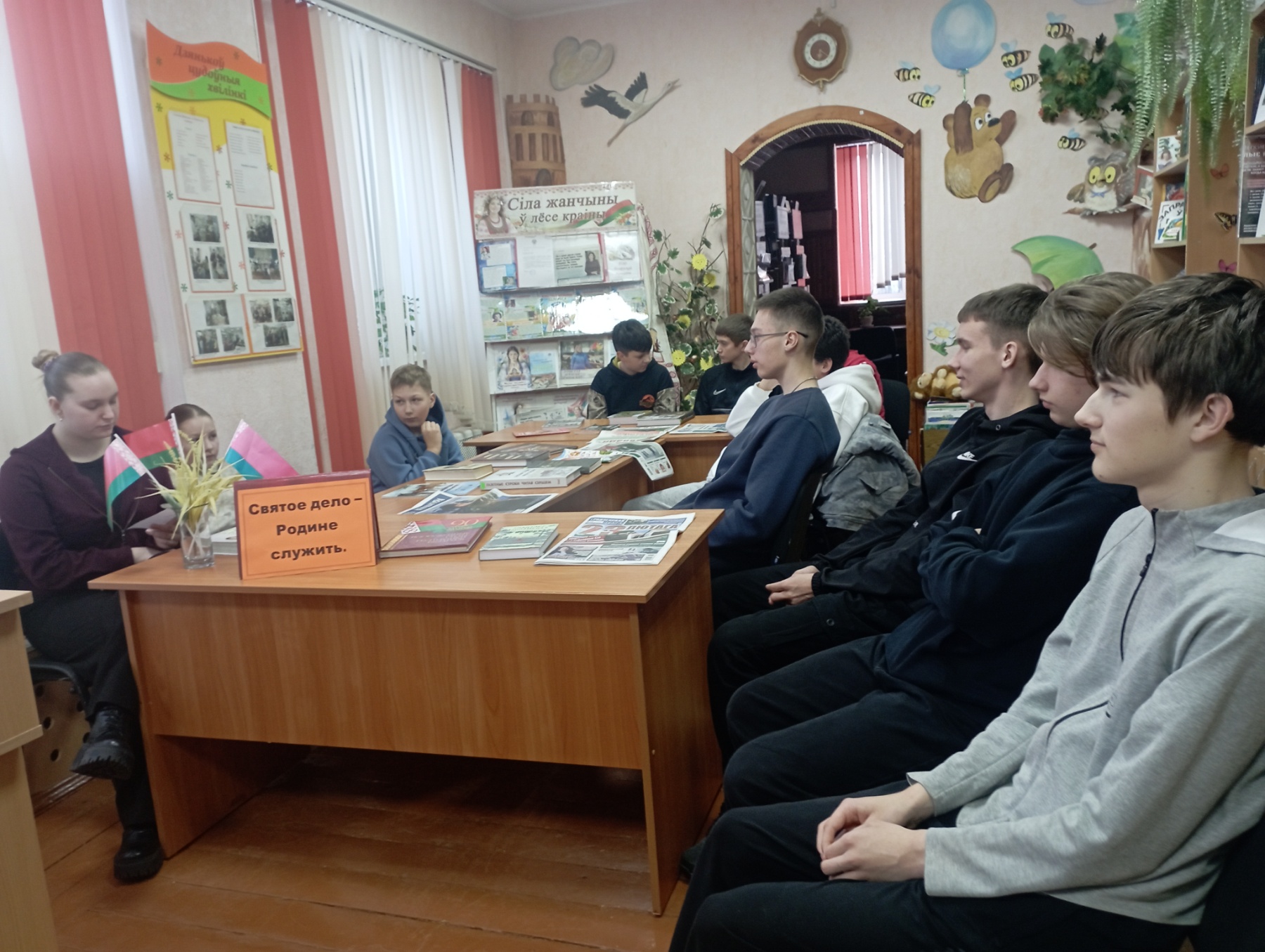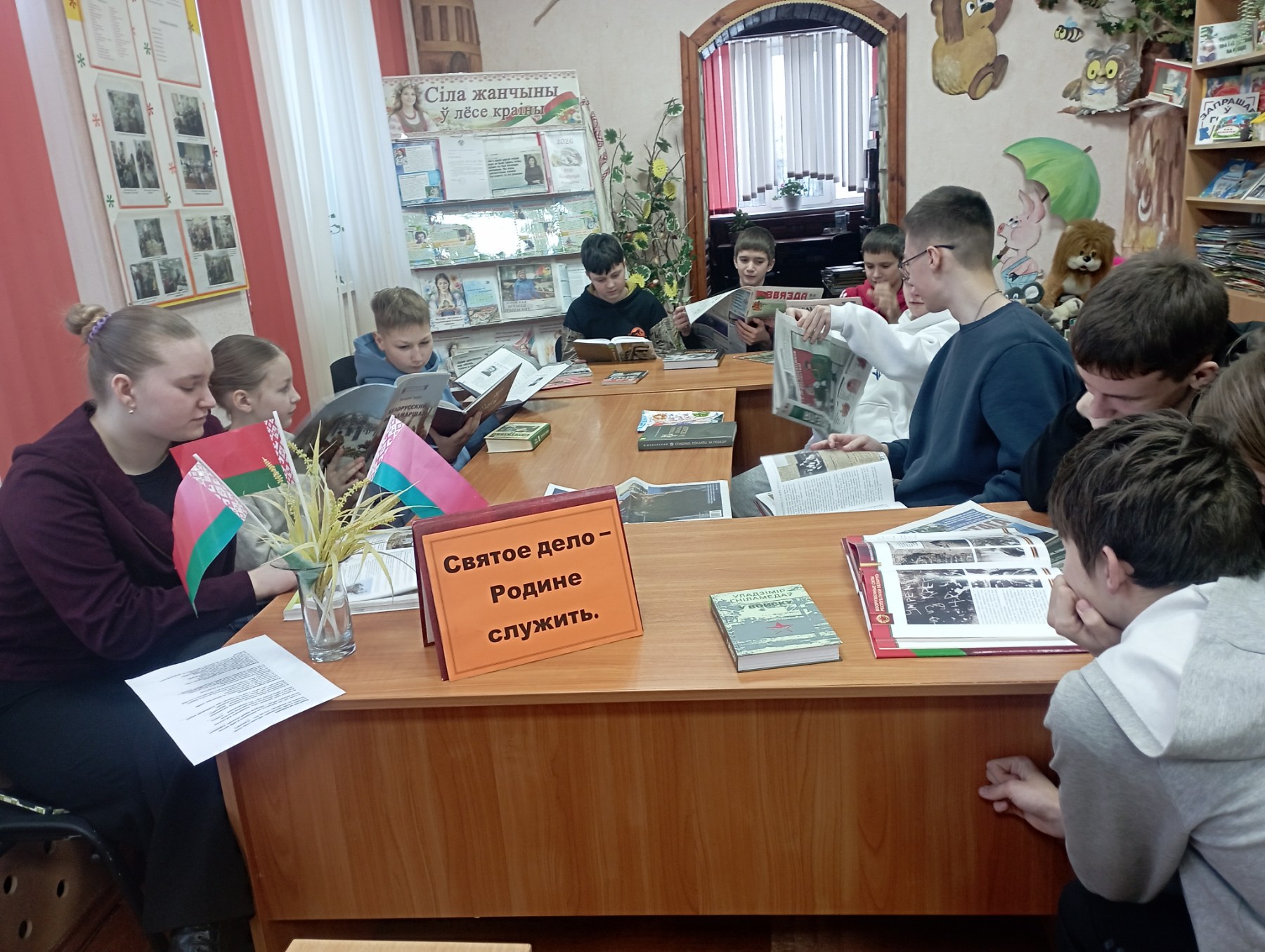 22 лютага, напярэдадні Дня абаронцы Айчыны, філіял “Сельская бібліятэка аг. Кальчуны” сабраў сваіх наведвальнікаў на патрыятычна- пазнавальную праграму “Святая справа – Радзіме служыць”. У рамках мерапрыемства быў падрыхтаваны агляд тэматычнай літаратуры, які пазнаёміў прысутных з гераічным шляхам айчыннай арміі і сучаснымі задачамі абароны Айчыны. Бібліятэкар правяла інфармацыйную гутарку, падчас якой дзеці актыўна ўдзельнічалі ў дыскусіях, дзяліліся сваімі думкамі пра падрыхтоўку да службы ў войску. Былі праведзены конкурсы і віктарыны, якія дапамаглі замацаваць веды і стварыць адпаведны настрой. Гучалі армейскія песні, а кінафільм “Салдацкія будні” дазволіў паглядзець на жыццё вайскоўцаў зблізку. Бібліятэкар надала шмат увагі віншаванням з нагоды свята, падкрэсліваючы важнасць абароны Радзімы.