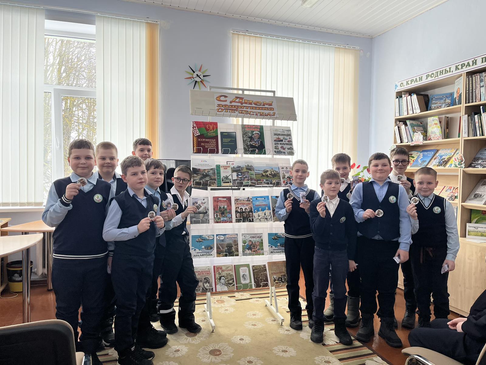 23 лютага Ашмянская раённая бібліятэка сабрала вучняў 4 “Б” класа гімназіі №1 г.Ашмяны на конкурсна-гульнявую праграму “Армейскі калейдаскоп”, прысвечаную Дню абаронцаў Айчыны і Узброеных сіл Беларусі. Акрамя займальных гульняў і конкурсаў, якія дазволілі пагрузіцца ў ваенную атмасферу, для дзяцей была арганізавана кніжная выстава «С Днем защитника Отечества!». На выставе размясціліся выданні, прысвечаныя гісторыі ўзброеных сіл, подзвігам герояў Вялікай Айчыннай вайны, танкам і авіяцыі, а таксама цікавыя энцыклапедыі для хлопчыкаў. Гэтае спалучэнне гульняў і кніжнай экспазіцыі зрабіла мерапрыемства не толькі забаўляльным, але і пазнавальным, дазволіўшы юным наведвальнікам даведацца больш пра гераічнае мінулае сваёй Айчыны.