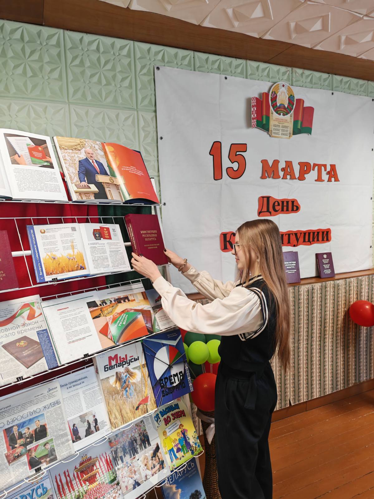 Напярэдадні Дня Канстытуцыі Рэспублікі Беларусь, 13 сакавіка бібліятэкар філіяла “Сельская бібліятэка аг.Навасёлкі” сумесна з работнікамі філіяла “Сельскі клуб аг.Навасёлкі” правялі інфармацыйны компас “Канстытуцыя: што мы ведаем?”. Падлеткі і моладзь даведаліся пра асноўныя аспекты Канстытуцыі: калі быў прыняты Асноўны закон краіны, колькі раздзелаў ён утрымлівае, і які дакумент мае найвышэйшую юрыдычную сілу ў Рэспубліцы Беларусь. Атрыманыя веды ўдзельнікі змаглі практычна прымяніць, прыняўшы ўдзел у тэматычнай віктарыне. Дадатковым кампанентам мерапрыемства стала выстава “Канстытуцыя Беларусі – сімвал дзяржавы”, якая дапоўніла агульную атмасферу свята.