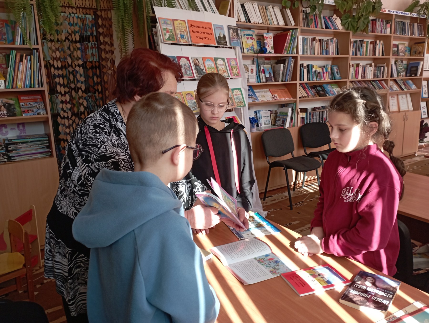 Да Дня праваслаўнай кнігі, 14 сакавіка ў філіяле “Сельская бібліятэка аг.Кальчуны” праведзены агляд літаратуры «Духовных книг Божественная мудрость». Падчас мерапрыемства ўдзельнікі пазнаёміліся з кнігамі, якія нясуць у сабе вучэнні дабрыні, міласэрнасці і любові да бліжняга. Разам абмяркоўвалі і чыталі наймудрэйшыя выказванні, а таксама пашырылі свае веды пра Біблію. Усім удзельнікам былі прапанаваны кнігі для дамашняга чытання, каб працягнуць знаёмства з духоўнай літаратурай.