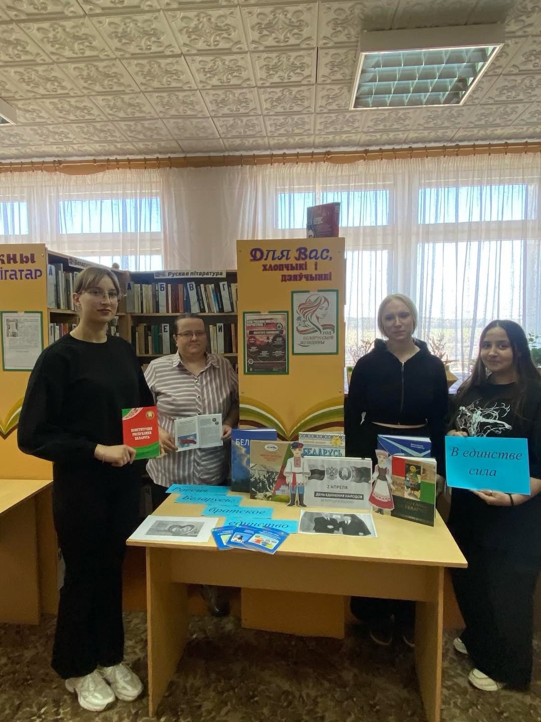 2 красавіка ў філіяле “Сельская бібліятэка аг. Граўжышкі” праведзены тэматычны прагляд літаратуры «В единстве сила», прысвечаны Дню яднання народаў Беларусі і Расіі. Чытачы пазнаёміліся з кнігамі і матэрыяламі, якія распавядаюць пра агульную гісторыю, культуру і дасягненні дзвюх брацкіх краін.