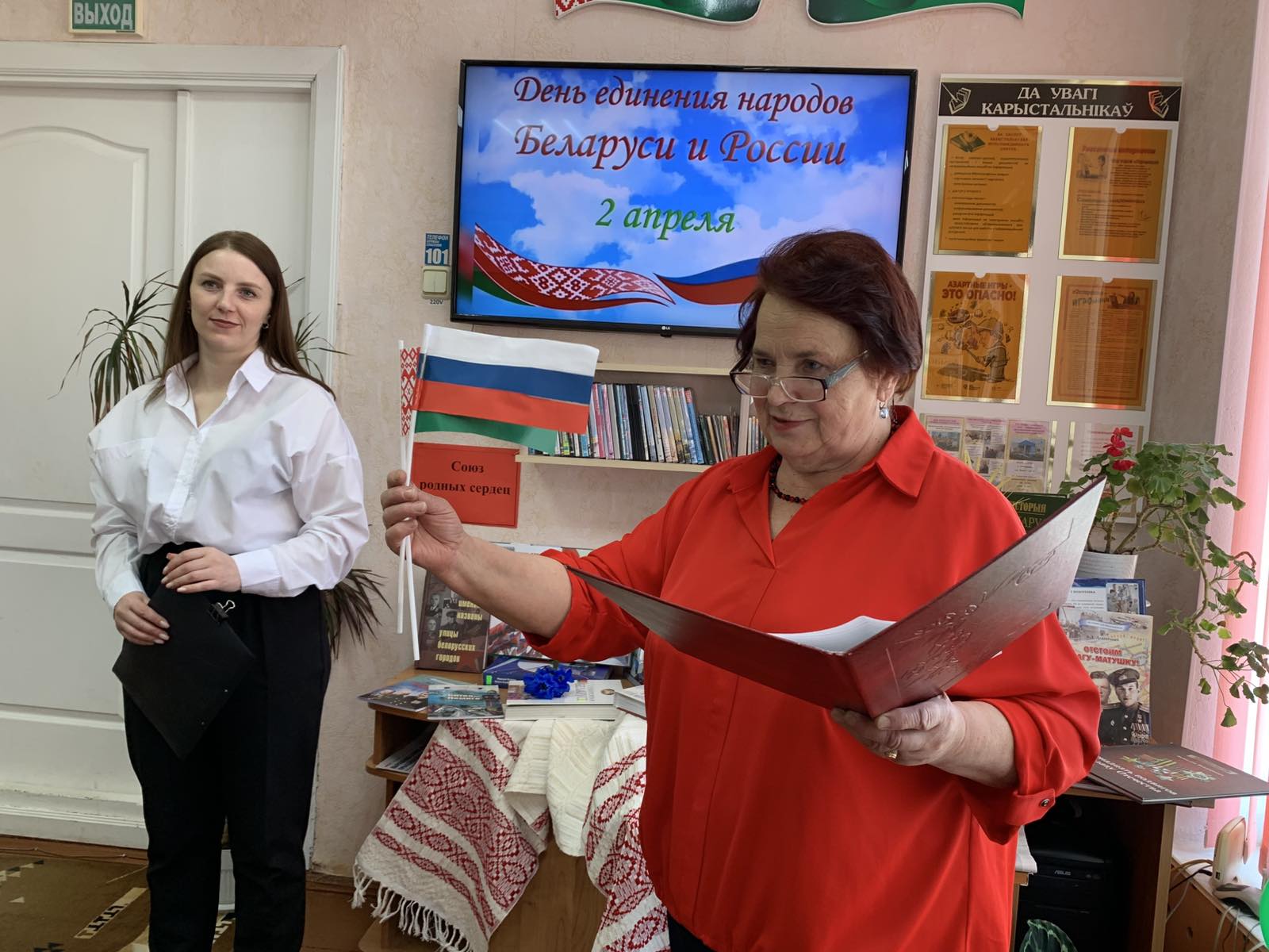 2 красавіка ў філіяле “Сельская бібліятэка аг. Кальчуны” адбылася ўрачыстая сустрэча, прысвечаная Дню яднання народаў Беларусі і Расіі. Падчас відэавандроўкі «Союз родных сердец» дзеці і падлеткі акунуліся ў атмасферу братэрства і сяброўства. Удзельнікі мерапрыемства з задавальненнем разгадвалі крыжаванкі, чыталі вершы, удзельнічалі ў віктарыне і гульнях, атрымлівалі асалоду ад прагляду відэаролікаў і кліпаў па тэме. З інфармацыйнай літаратуры і расказа бібліятэкара дзеці даведаліся аб актуальнасці супрацоўніцтва Беларусі і Расіі для нашага раёна. Ключавым момантам мерапрыемства стала стварэнне “Дрэва сяброўства” з пажаданнямі для Беларусі і Расіі, якое стала сімвалам непарушнага сяброўства славянскіх народаў. У ходзе дыскусіі ўдзельнікі зрабілі важны вывад: Беларусь і Расія маюць агульную гісторыю, агульныя інтарэсы і агульных герояў, якімі ганарацца абодва народы.