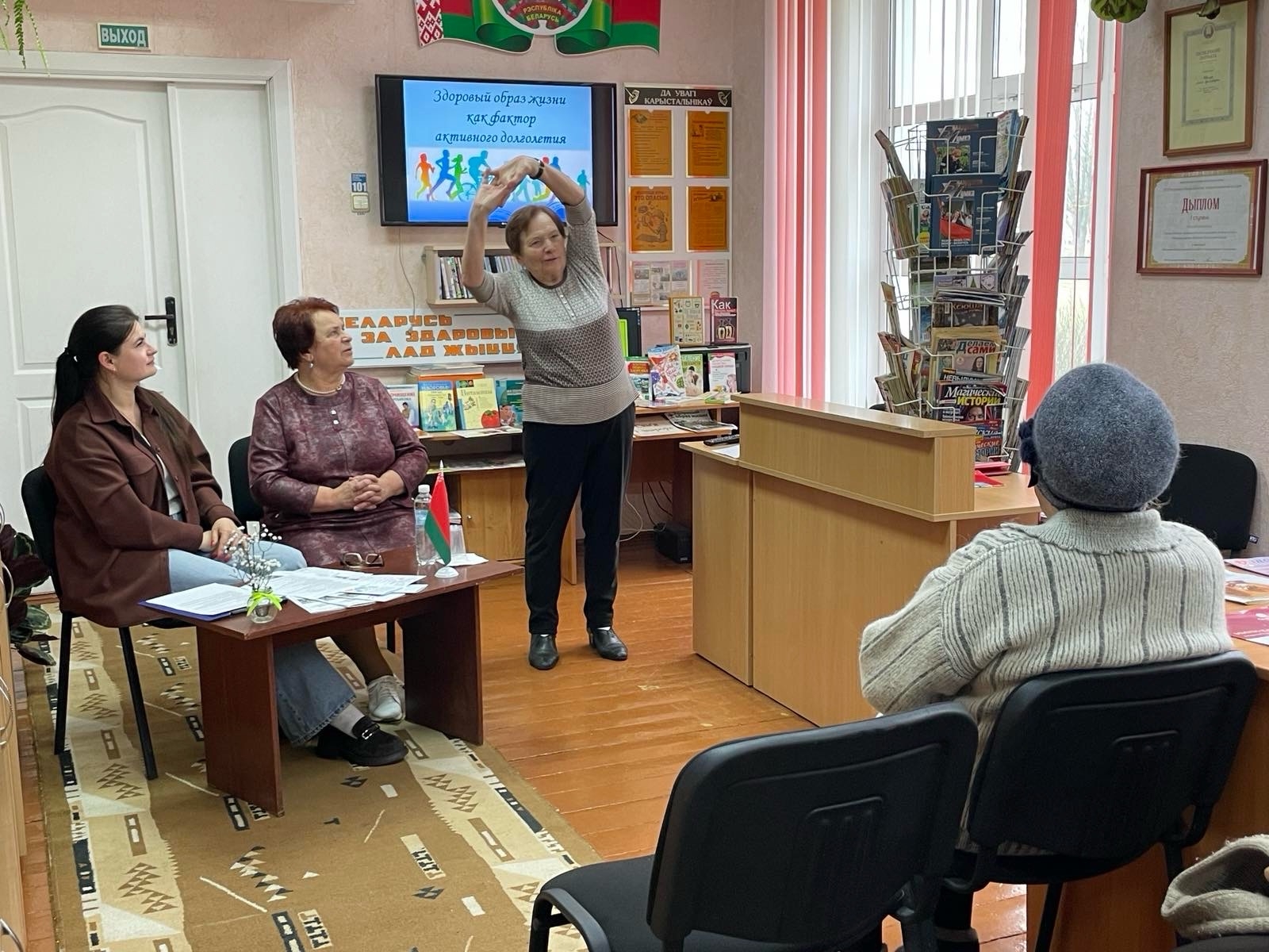 8 красавіка ў філіяле “Сельская бібліятэка аг. Кальчуны” прайшла гадзіна цікавай сустрэчы з людзьмі пажылога ўзросту “Курс на ЗЛЖ”, прымеркаваная да Сусветнага дня здароўя, які ў гэтым годзе праходзіў пад дэвізам “Разам да здароўя. Разам з навукай”. На мерапрыемстве прасутнічалі: фельчар Кальчунскага ФАПа Булкевіч Ала Іванаўна, правізар-арганізатар цэнтральнай аптэкі горада Ашмяны Кашчыц Алена Станіславаўна, псіхолаг ДУ “ТЦСАН Ашмянскага раёна” Карповіч Алеся Леанідаўна. Пажылыя людзі дзяліліся сакрэтамі доўгажыхарства. Ліснеўская Марыя Юльянаўна паказала, як штодзённая ранішняя гімнастыка дапамагае ёй захаваць здароўе. Для замацавання ведаў удзельнікі адказвалі на пытанні віктарыны “Аб каштоўнасці здароўя” і праглядалі відэаролікі на гэтую тэму. Удзельнікам мерапрыемства былі ўручаны буклеты і памяткі “Я выбіраю ЗЛЖ”.