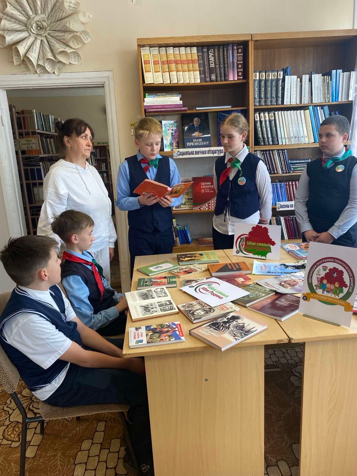 Мэта сустрэчы – далучыць рабят да чытання кніг патрыятычнага зместу. Школьнікі даведаліся пра піянераў-герояў, якія змагаліся разам з дарослымі ў партызанскіх атрадах, стаялі побач з падпольшчыкамі і набліжалі Вялікую Перамогу. Гутарка плаўна перайшла ў чытанне твораў і вершаў аб вайне, пераказ асобных эпізодаў. Кніжная выстаўка “Не згасне памяці свечка” выклікала ў падлеткаў жывы водгук, дапамагла выбраць літаратуру для хатняга чытання і надоўга запомніцца кожнаму.